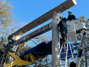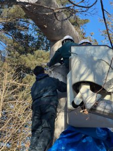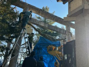 昨日、波多野電気 様にご協力をいただき 今年も音更神社様に大注連縄を奉納させていただきました